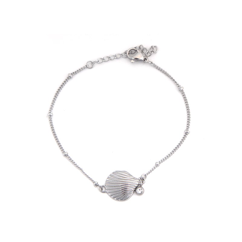 Dieses tolle Edelstahlarmband hat einen maritimen Muschelanhänger und einen klaren Stein. Elegant, modern und sportlich zu kombinieren.
