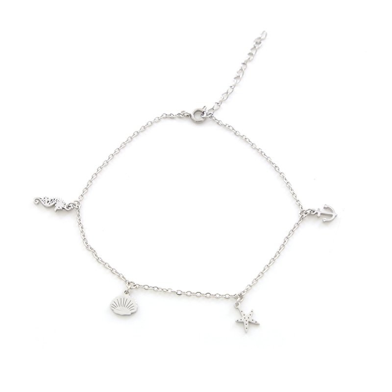 Dieses tolle Edelstahlarmband hat mehrere kleine maritime Anhänger (Seepferdchen, Anker, Seestern und Muschel). Ob zum selber tragen oder als Geschenk, es gefällt dem Meeresliebhaber garantiert.