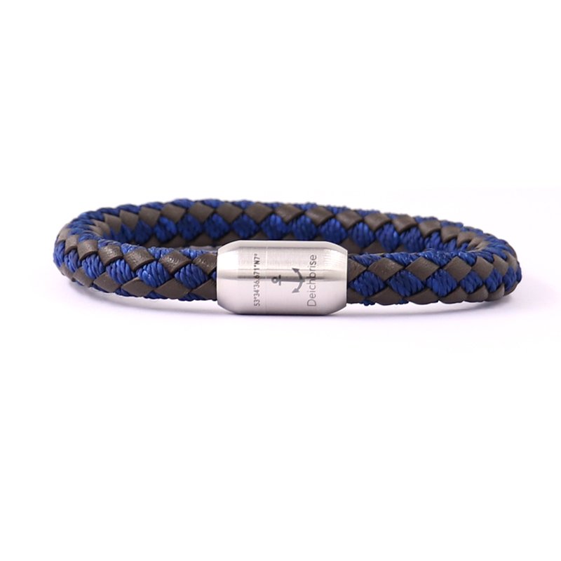 Leder- & Segeltauarmband in schwarz/blau mit silberner Magnetschließe (8mm)