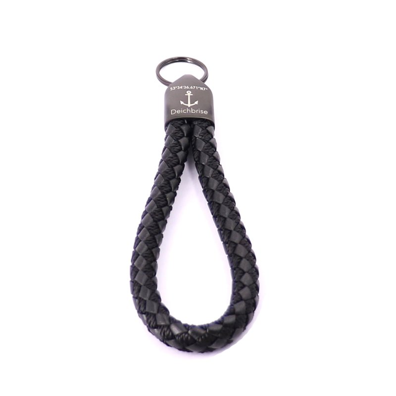 Schlüsselanhänger aus Segeltau schwarze Leder & Tau Kombination