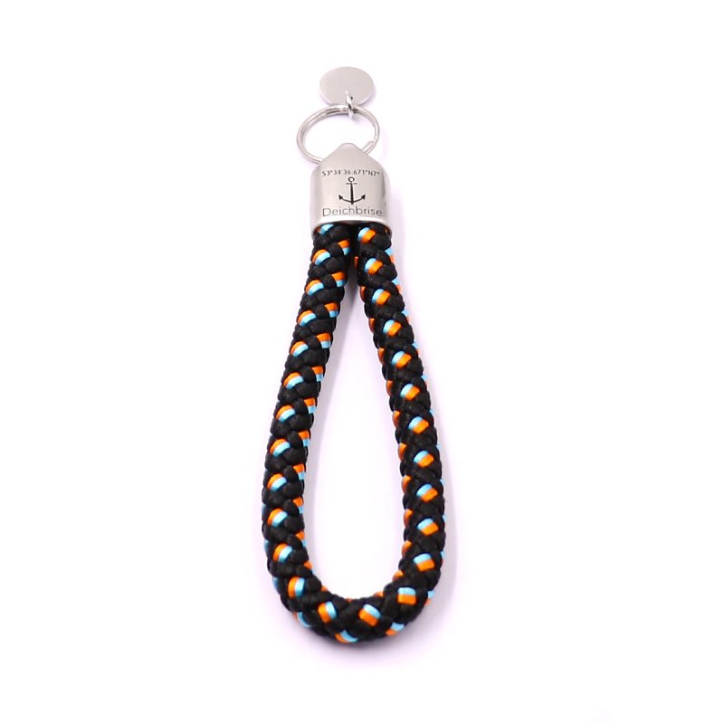 Schlüsselanhänger aus Segeltau Insel-Edition Borkum (schwarz/hellblau/orange 8mm)