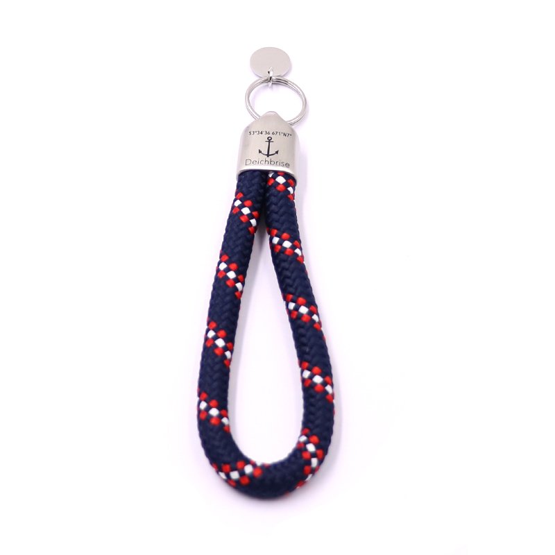 Schlüsselanhänger aus Segeltau Insel-Edition Langeoog (blau/rot/weiss 8mm)